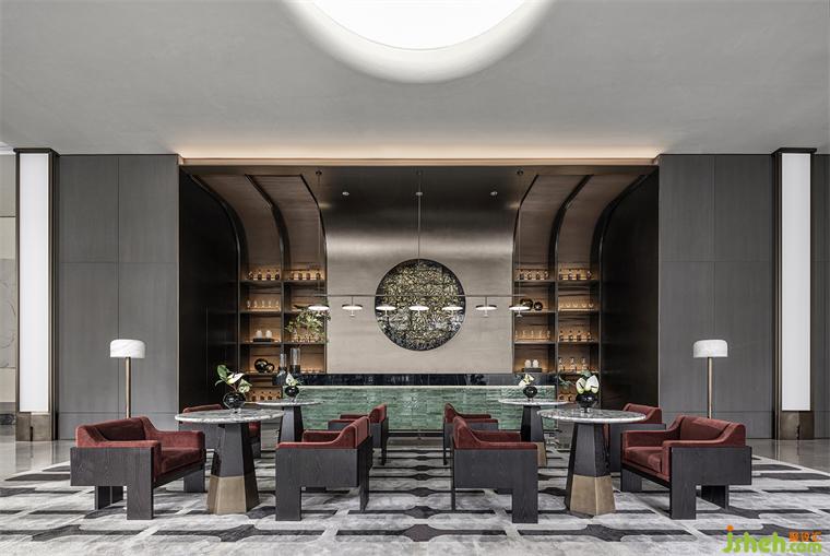 水吧主材提取了當?shù)劓闹莞G的工藝及色彩打造的手工磚,金屬網(wǎng)與古銅色層板,售樓處設(shè)計用材質(zhì)的肌理營造多元、多層次造型,傳統(tǒng)技藝與當代審美在此相融相生,散發(fā)出新生的力量。