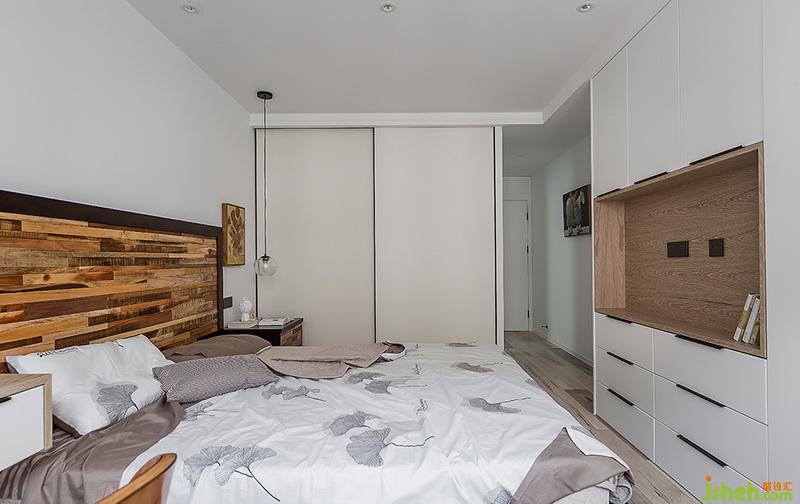 次臥室設(shè)計(jì)公司采取榻榻米形式,整體柜體和書桌現(xiàn)場木工制作,面貼KD板,一大排抽屜是比較實(shí)用的,可以放很多書籍,衣服等。