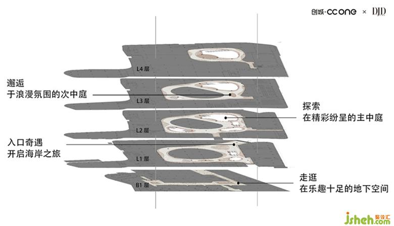 創(chuàng)城·ccone商業(yè)部分總建筑面積約8萬㎡,商業(yè)及商業(yè)配套分布于B1-L4層,B1層為超市+小餐飲+部分停車位,B2層為停車場空間。