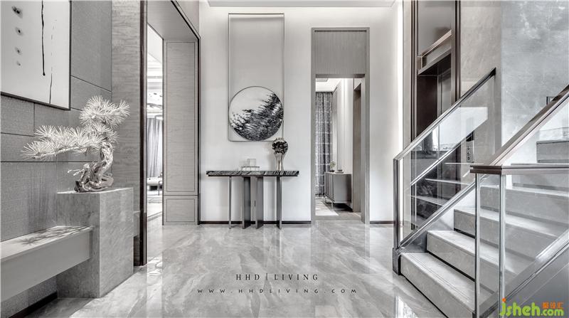 萬科紅樹東岸別墅依海而建,坐落于珠海市唐家灣。水墨霞煙作為空間設(shè)計(jì)的場景語言。借用大寫意中國畫的意境、色彩構(gòu)成融入設(shè)計(jì)中,打造一個(gè)低調(diào)雅致的生活氛圍。并采用智能化科技,在有限的空間里打造一個(gè)中國水墨畫、字畫的“博物館”。將中國畫作為此戶型的記憶點(diǎn)和亮點(diǎn),取其意而不破形,在意境東方的主題之下,尋求更多的現(xiàn)代情致。氤氳出東方人居的獨(dú)特氣韻。