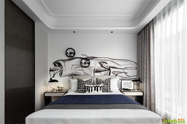 男孩房丨將男孩兒喜歡的汽車Sketch作為背景墻,將他的熱愛融入他的小天地,他有時書桌前暢游在汽車世界里,有時在地毯上擺弄他的汽車模型,他的夢想在這個空間里日益。