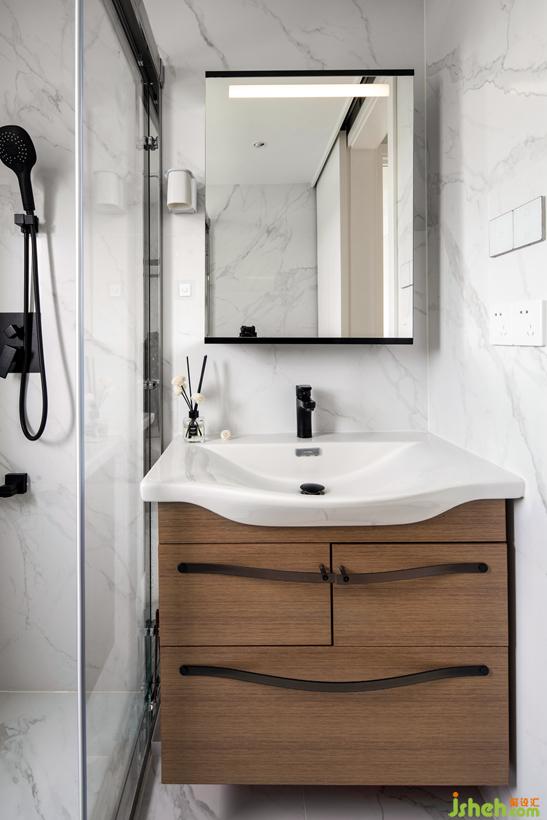 浴室柜多角度鏡面設計,鏡柜內外都有照明,可以環(huán)形檢查自己的儀容。內部配有充電口,充電線不必從柜門夾縫中伸出,吊在半空充電。