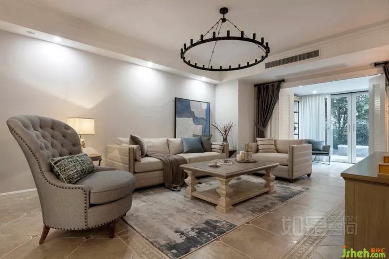 客廳的美式家具采用獨(dú)特的自然紋理和中性的色調(diào),避免了傳統(tǒng)美式的厚重感,帶來獨(dú)特的審美享受