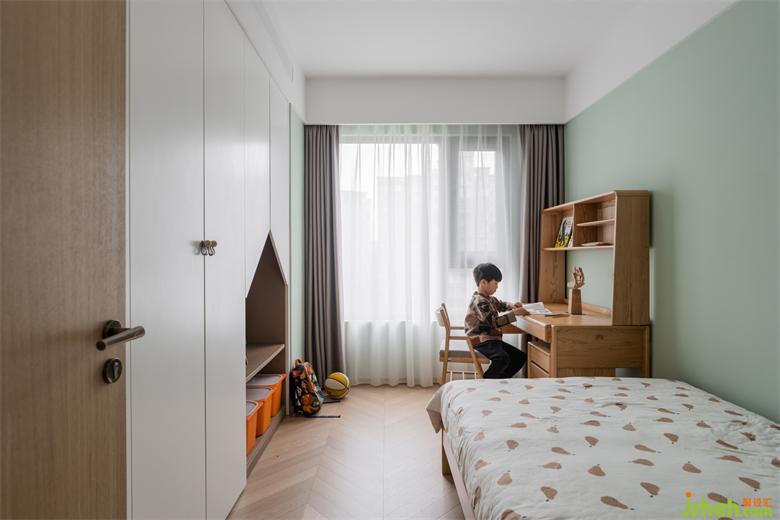 就讀學(xué)前班的孩子,正是調(diào)皮好動(dòng)的時(shí)候。兒童房除了必要的功能需求以外,家裝設(shè)計(jì)盡量減少了不必要的裝飾,為孩子提供更多的玩??臻g。