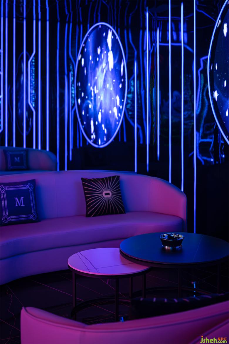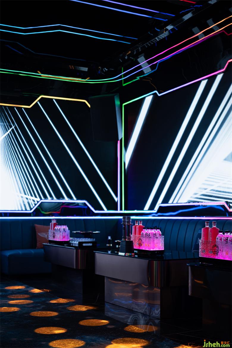 設(shè)計(jì)師根據(jù)每個(gè)包間的主題,定制了舞臺(tái)燈光及動(dòng)畫效果。娛樂(lè)城設(shè)計(jì)以聲光電的形式將所有主題以更靈動(dòng)的形式呈現(xiàn)出來(lái),隨著音樂(lè)節(jié)奏的跳動(dòng),投射出的千變?nèi)f化的電光秀(畫面及燈光),娛樂(lè)城設(shè)計(jì)光影變化中讓消費(fèi)者感受到炙熱又松弛。
