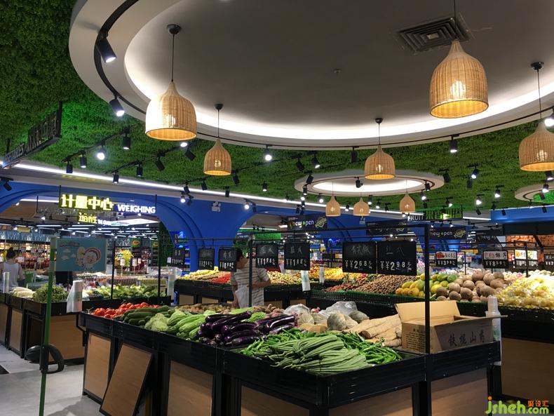 整齊如列兵式的水果貨臺(tái)擺放,以及綠色天花板的無形襯托,使人們由此產(chǎn)生一種天然的環(huán)保享受之感。室內(nèi)設(shè)計(jì)師