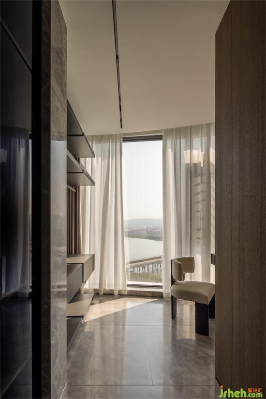 寬敞落地窗戶,充足的自然光線。東江首府家裝設(shè)計陽光悠悠地灑進屋內(nèi),輕柔而恬逸、溫暖且安適,感受寬廣尺度和身體的舒展釋然。Spacious floor to ceiling windows with plenty of natural light. Sunshine leisurely pours into the room, gentle and peaceful, warm and comfortable, feeling the broad scale and the relaxation of the body.