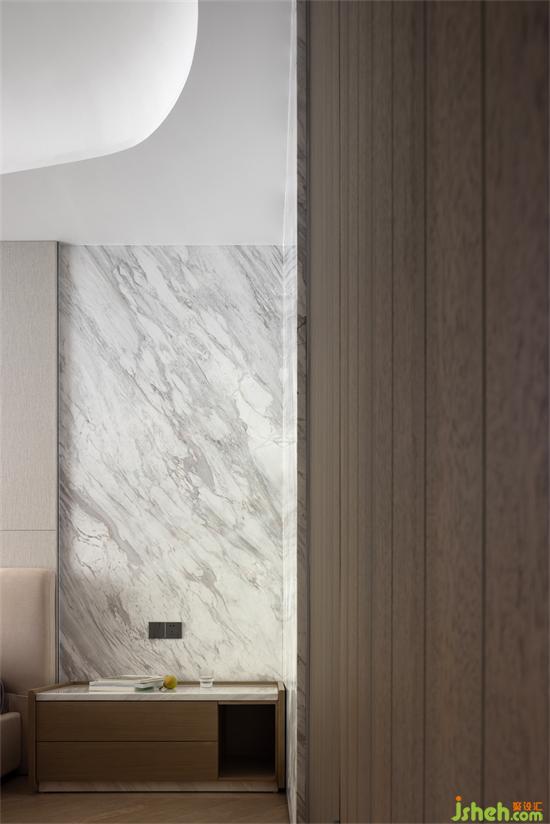A large number of circular arc details are used, and the cloud shaped ceiling of the cabinet body and soft fabric design symbolize the soft side of the space.