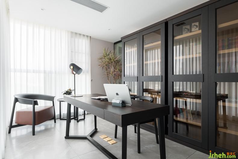 行走在城市之中,讀書可以給人帶來片刻的安寧。書房與客廳同時作為一個獨立的空間,以玻璃推拉門作為隔斷,緩和了兩個空間之間的界限,也使得整個空間更加寬敞通透且明亮。室內(nèi)設(shè)計師