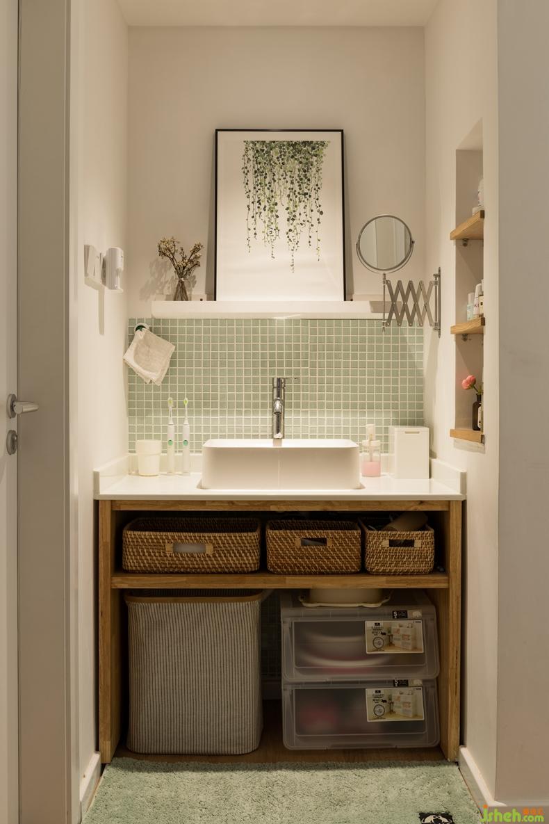 洗漱臺經(jīng)常是一個(gè)毫無條理的卻又尷尬的存在,考慮到實(shí)用性特地選用了抽屜式收納籃。主臥衛(wèi)生間墻壁選用的灰色貼磚把天花和地板區(qū)分開來,懸空的智能馬桶也做了水箱隱藏的小設(shè)計(jì),做到了衛(wèi)生無死角。多余的空間有了綠植和香薰的點(diǎn)綴,便有了一種簡約清新的體驗(yàn)。