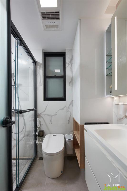 衛(wèi)生間干濕分離,裝修設(shè)計(jì)做了獨(dú)立洗手臺(tái),通透且具有實(shí)用性!