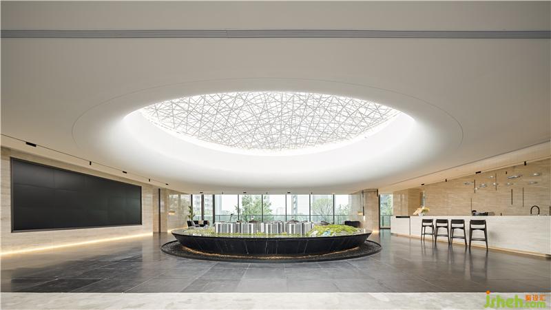 轉動著的沙盤,連接山水和天地之間,與洽談區(qū)的家具相互呼應,在有限的空間里,蘇州售樓處設計不斷的蜿蜒流轉、生生不息,形成自然與人居空間的滲透循環(huán)。