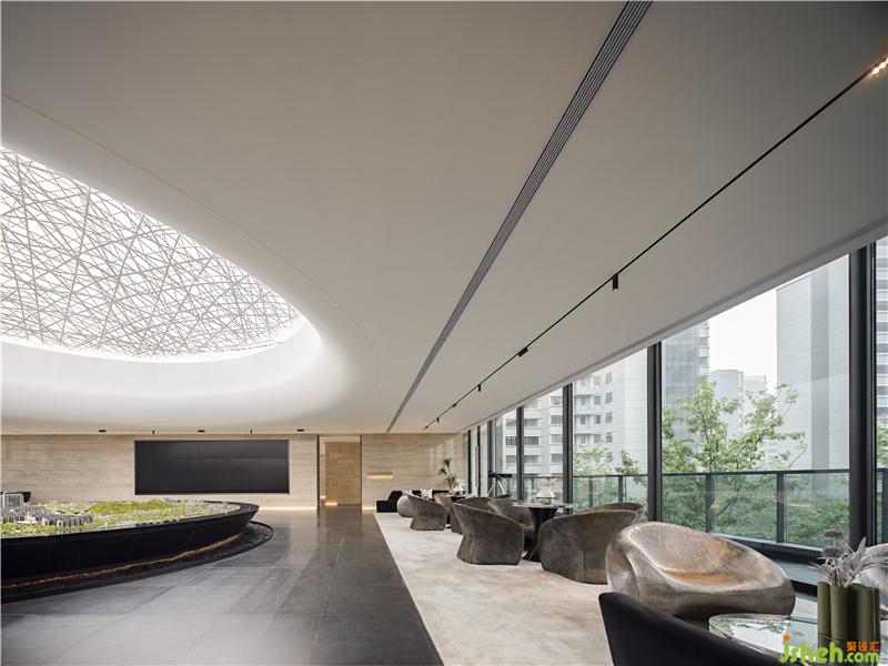 洽談區(qū)整個空間設計上追求與自然相融合。軟裝家具大量選用自建筑大師扎哈的設計作品,這也與扎哈一貫的設計理念相契合。