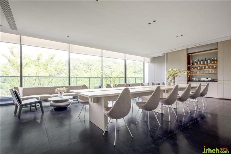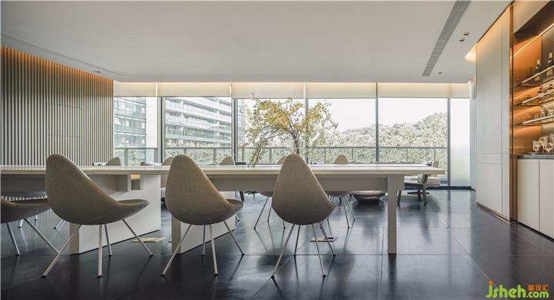 雙面全景落地玻璃,面向山水,質感高級。具有線條的家具結合竹編藝術之美,將都市人群隱與歸、品質與追求的生活態(tài)度、大藝術的輾轉顧盼全面映現。