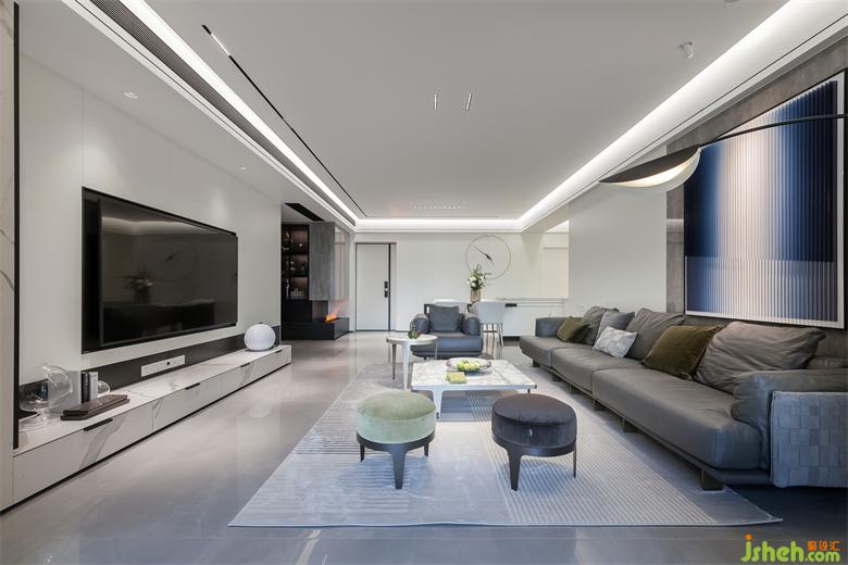 本案業(yè)主是對(duì)心態(tài)極其年輕夫妻,自由隨性,鐘愛(ài)黑白灰極簡(jiǎn)格調(diào)居所。家居設(shè)計(jì)師與業(yè)主對(duì)色彩和設(shè)計(jì)的調(diào)性的認(rèn)知有很多的契合點(diǎn)。高級(jí)灰的流行,黑白灰的受寵,我認(rèn)為,彩度越低,越顯高級(jí)。低彩度并不是無(wú)色,而是控制好色彩純度,保持家居的溫馨感,拒絕冰冷。軟裝用色上,沉穩(wěn)的灰調(diào)、潔凈的白色、極具質(zhì)感的家具,同時(shí)介入鮮艷的色彩,起到活躍空間的作用。