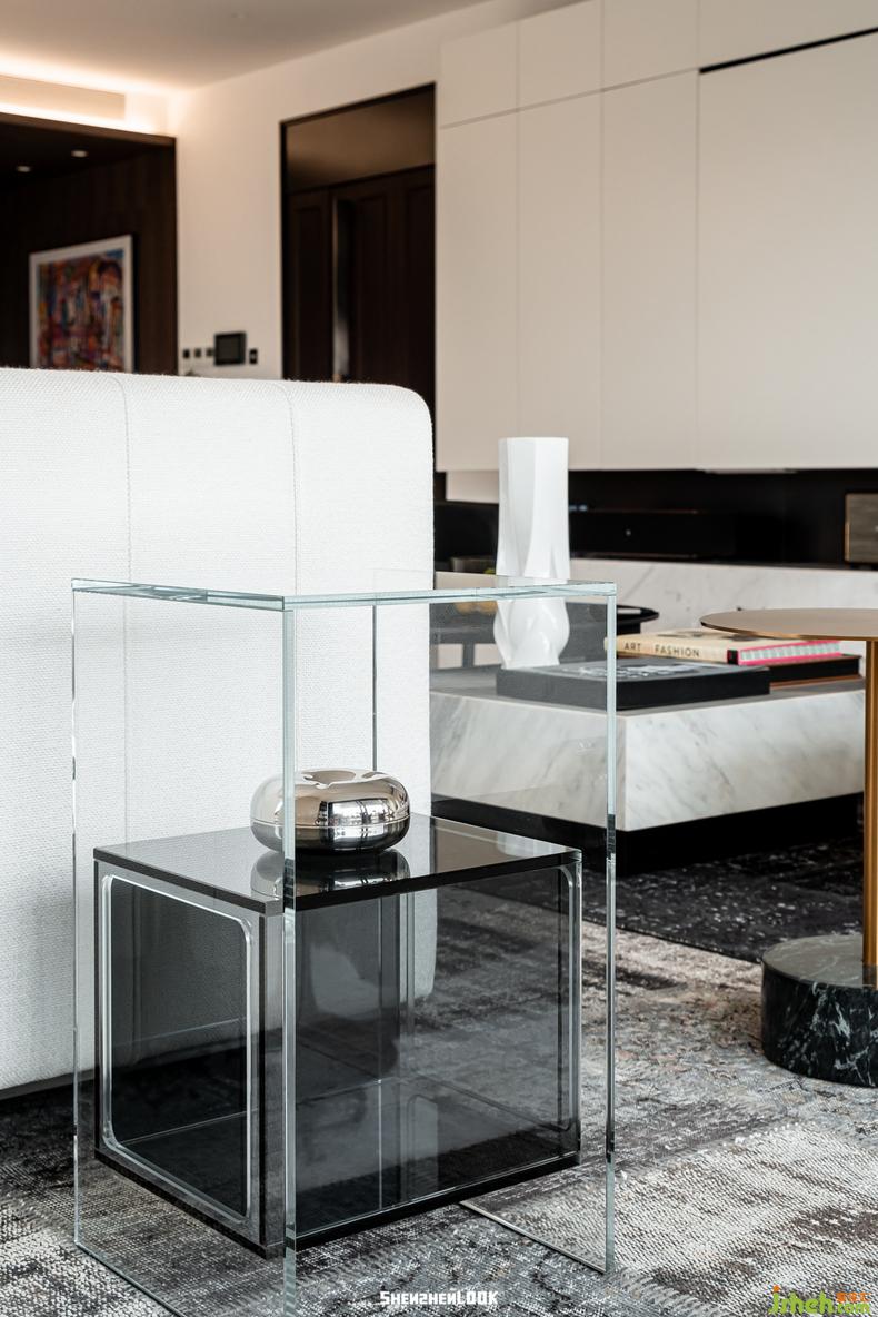 客廳沙發(fā)邊幾是來自意大利的Fiam Magique,在白色背景映襯喜愛弧形玻璃外觀現(xiàn)代意象十足,細節(jié)處又透露出生活溫度,獨一無二的特質(zhì)彰顯出眾的品位。